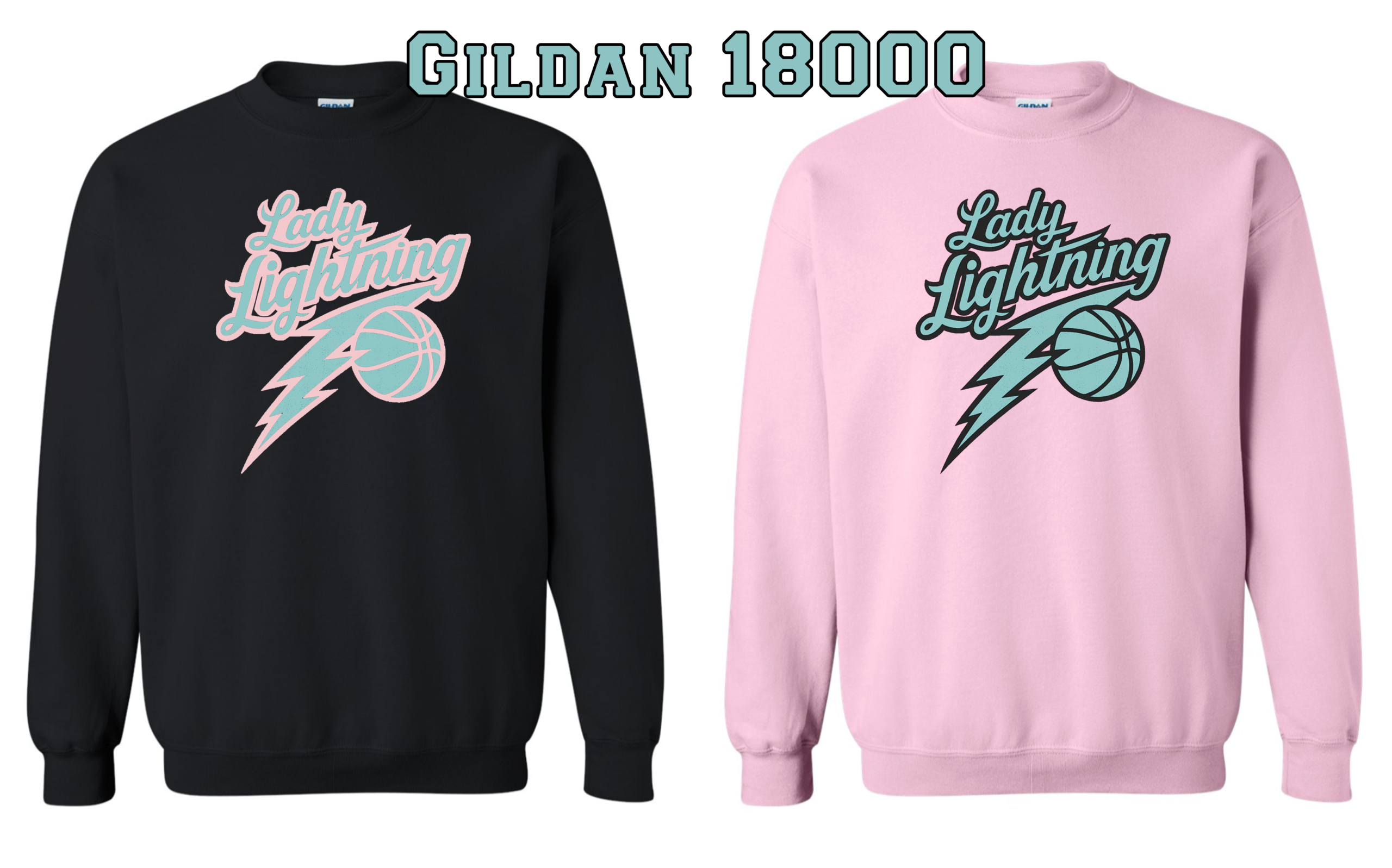 Support the Lady Lightning with fan apparel to support your favorite little baller. Gildan tees & crewneck sweatshirts available. Can order tee pr crewneck with logo on front or customize by adding name and number on the back!